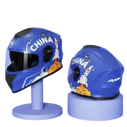 Casque Moto Intégral Enfant en ABS Bleu Fusée.