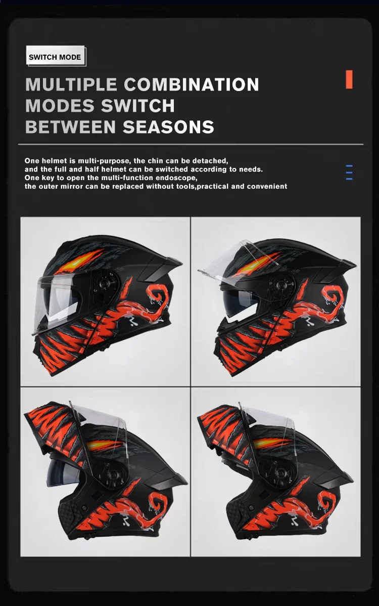 • Casque moto modulaire en ABS, alliant style et protection.